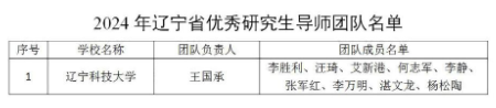 近日,辽宁省教育厅发布《关于公布2024年辽宁省优秀研究生导师、优秀研究生导师团队名单的通知》,材料与冶金学院王国承教授团队获评2024年辽宁省优秀研究生导师团队,这是材料与冶金学院第一个,同时也是乐动在线下载(中国)第二个获此奖项的团队。
