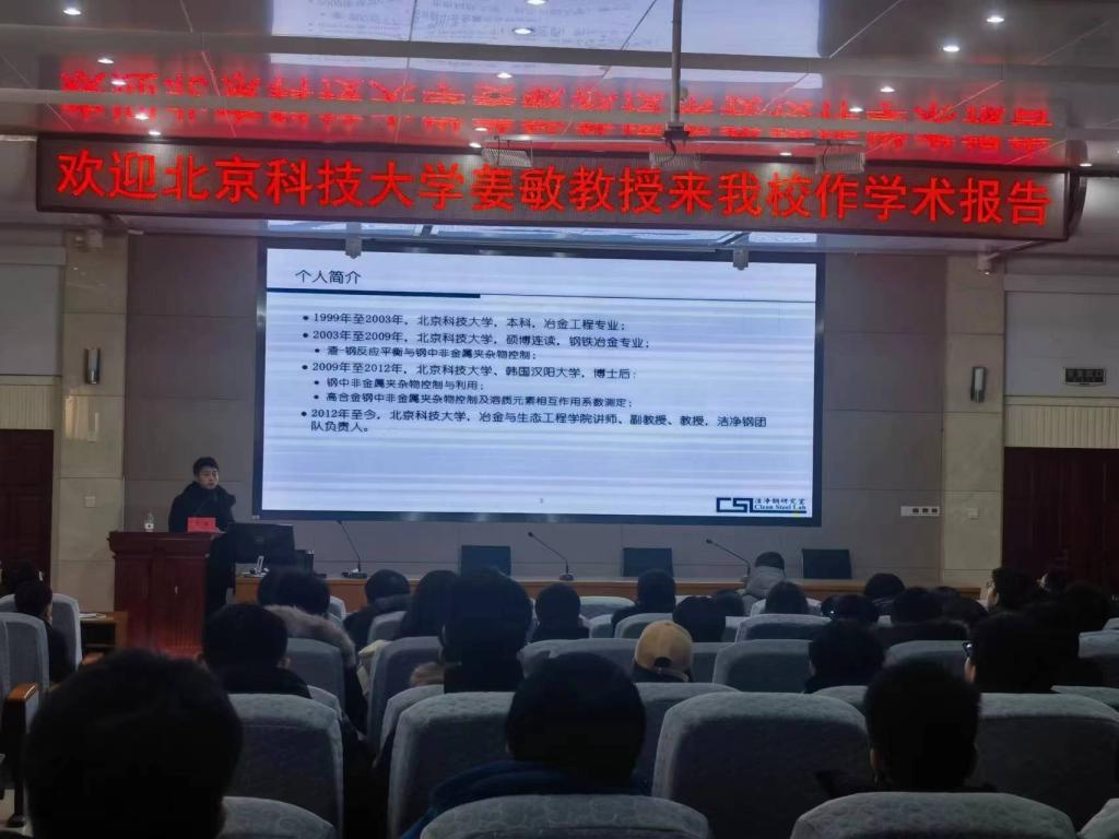 12月22日,北京科技大学姜敏教授应邀为乐动在线下载(中国)材料与冶金学院师生作了题为《硅脱氧线材中夹杂物控制技术》的学术报告。