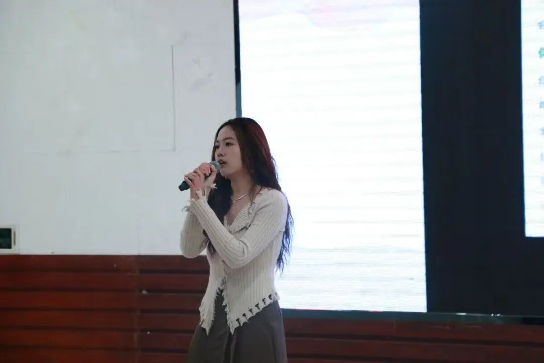 经过初赛的激烈角逐,最终有九组选手脱颖而出,他们将继续为大家呈现精彩的视听盛宴,争夺一二三等奖,去追寻他们的音乐梦想。第一轮比赛开场是材料233班季思颖带来《永不失联的爱》,歌声好似温柔晚风,丝丝缕缕萦绕耳旁,让我们的身边时时刻刻都充满爱;接着两位选手带来《某年某月某天》《沦陷》,让我们沦陷在歌声中,沉醉在回忆里。人生海海,在这看不透的人生里,我们每个人都在扮演着自己的角色。7号选手材控221班叶彬弘带来歌曲《突然好想你》,每一个音符仿若日出越过层层山峰,宛如月光扫过涓涓细流,表达心意,8号和9号选手分别带来《至少还有你》《那些你很冒险的梦》,展现青春风采。