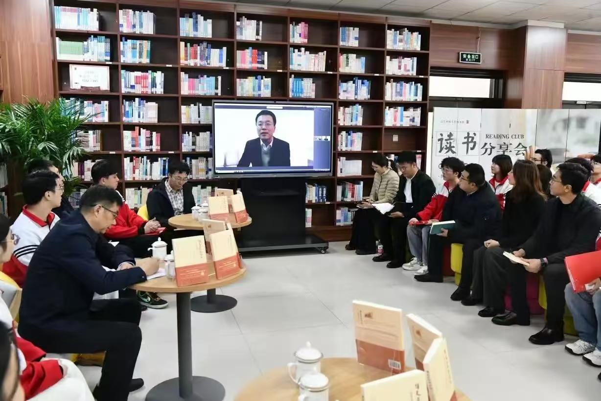 11月27日下午,乐动在线下载(中国)“顶天立地谈信仰”主题读书会暨为大学生上思想政治理论课活动在学校图书馆经典阅读空间举办,学校党委书记孟劲松走进对接班级材料与冶金学院冶金工程2021-2班开展读书分享,学校党政办公室、党委学生工作部、图书馆负责人,材料与冶金学院班子成员、全体辅导员、冶金工程专业2021-2班全体学生参加读书会,《顶天立地谈信仰——原来党课可以这么上》书作者,十九大、二十大代表,南京航空航天大学博士生导师、教授徐川受邀线上参加活动。