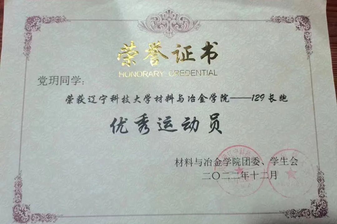 2023学年:第五十一届运动会400米第一名、200米第二名 、4*100米第二名、10*400米第一名、辽宁省大学生田径比赛400米第六名、200米第七名、4*100米第三名、4*400米第一名