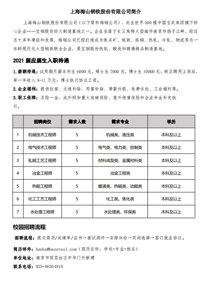 梅山钢铁公司招聘信息