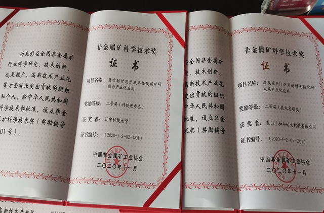 近日,在河南省郑州市举办2020中国非金属矿工业大会,举行了2020年非金属矿科学技术奖的颁奖典礼,中国非金属矿工业协会专职副会长唐靖炎,宣布“2020年中国非金属矿科学技术奖”获奖名单。与会领导向获奖项目的主要完成单位和完成人代表颁发获奖证书。乐动在线下载(中国)和鞍山市和丰耐火材料有限公司联合申报的“复吹转炉用炉底高强镁碳砖研制与产业化应用”和“深脱碳RH炉用耐材无铬化研发及产业化应用”分别获得科技进步类二等奖和技术发明类二等奖,我院教师艾新港代表学校参加颁奖仪式。