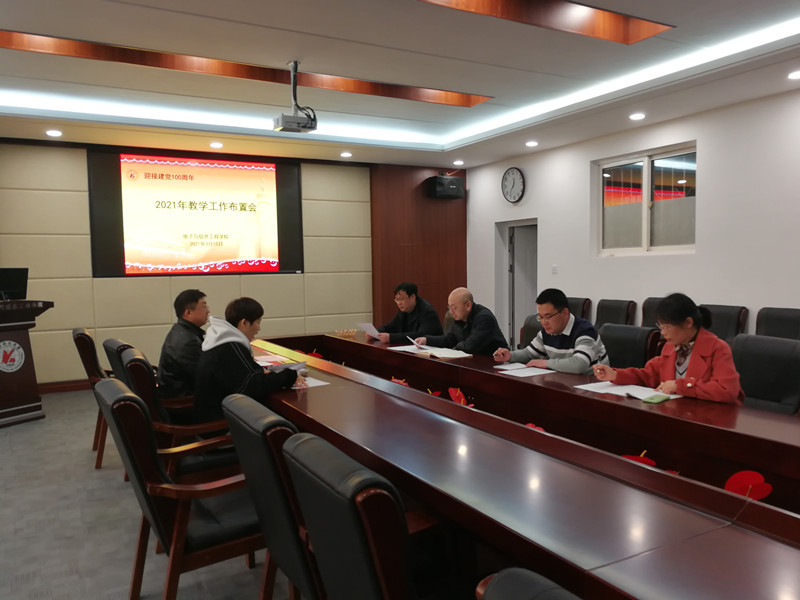 3月15日下午,电信学院于学院大会议室召开2021年度教学工作布置会,各系主任参加了会议。