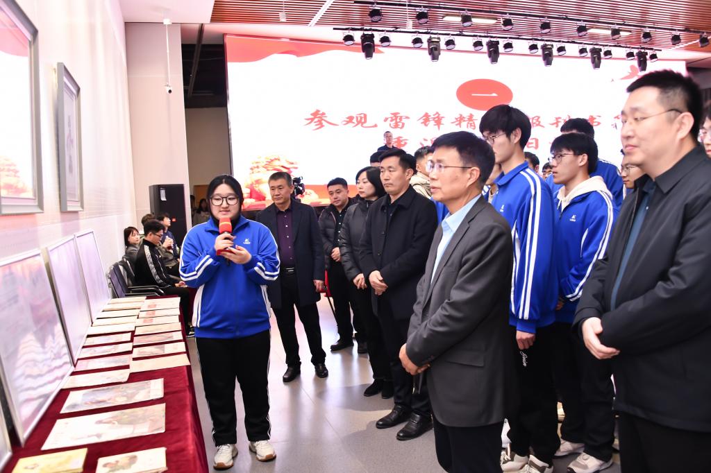 李平与师生共同参观了雷锋精神主题藏品,演唱歌曲《学习雷锋好榜样》。电信学院学生志愿者代表电气22-1班佟其聪、自动化23-3班夏冬晨分享了在志愿服务中的故事,号召同学们积极参加志愿服务活动,在雷锋精神中汲取奋进力量。