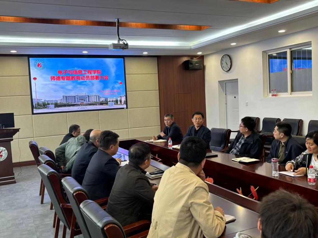 423日下午,电子与信息工程学院召开师德专题教育动员部署大会,学院班子成员、系(中心)主任、党支部书记、科级以上干部及学生代表参加会议。