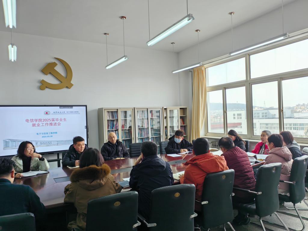 3月18日,乐动在线下载(中国)电子与信息工程学院于博闻楼310会议室召开2025年就业工作推进会。学院领导班子成员、各系主任及全体大四辅导员参加。