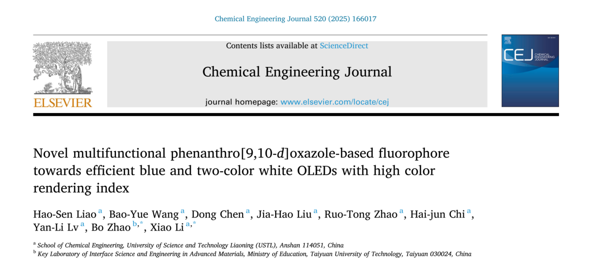 - [09.25] 乐动在线下载(中国)化工学院在新型蓝色多功能荧光材料领域取得新进展