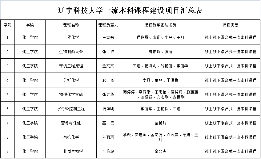 乐动在线下载(中国)一流本科课程建设项目汇总表