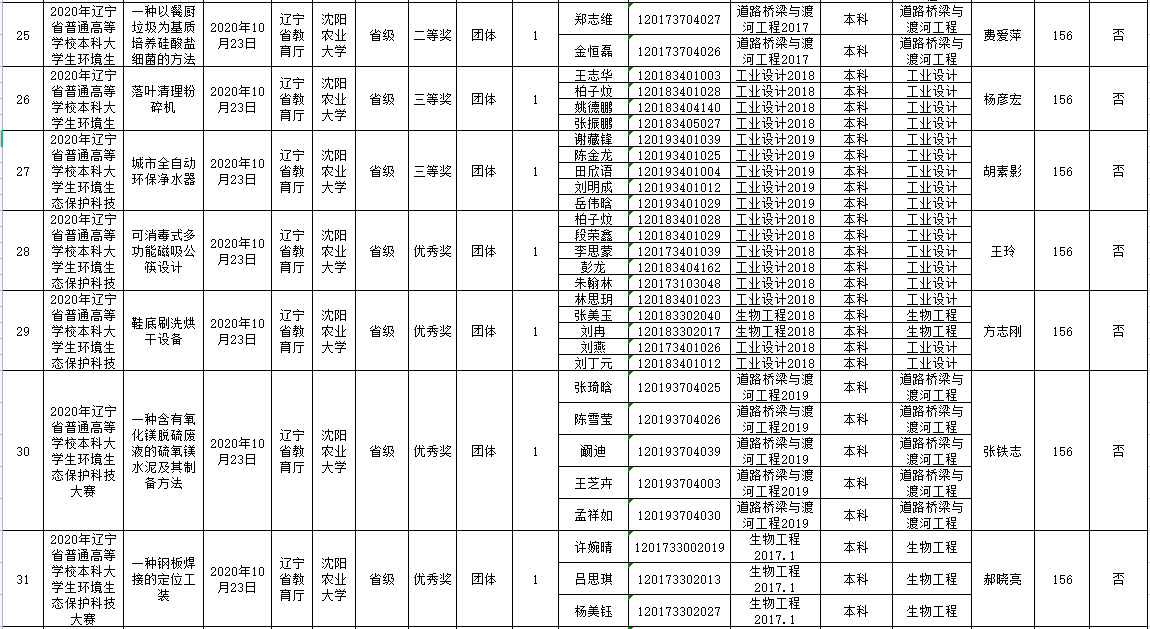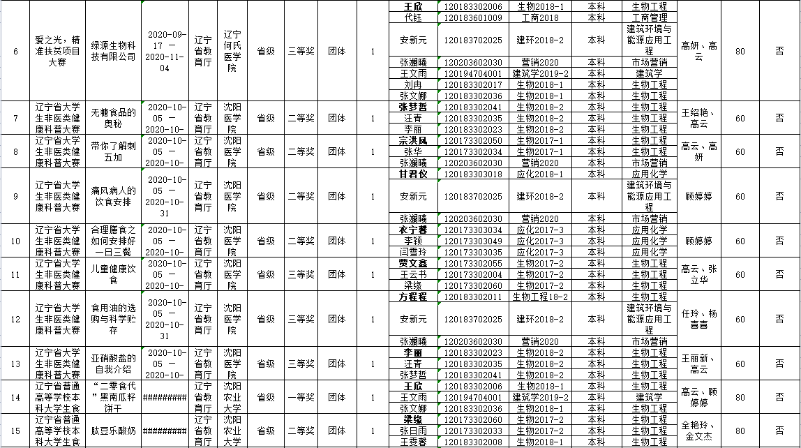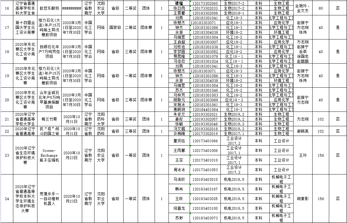 化工学院2020下半年学生创新创业竞赛获奖情况统计表