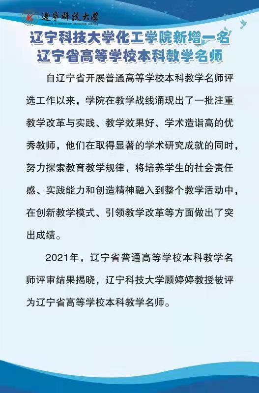 乐动在线下载(中国)化工学院新增一名辽宁省高等学校本科教学名师