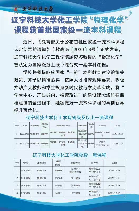 乐动在线下载(中国)化工学院“物理化学”课程获首批国家级一流本科课程