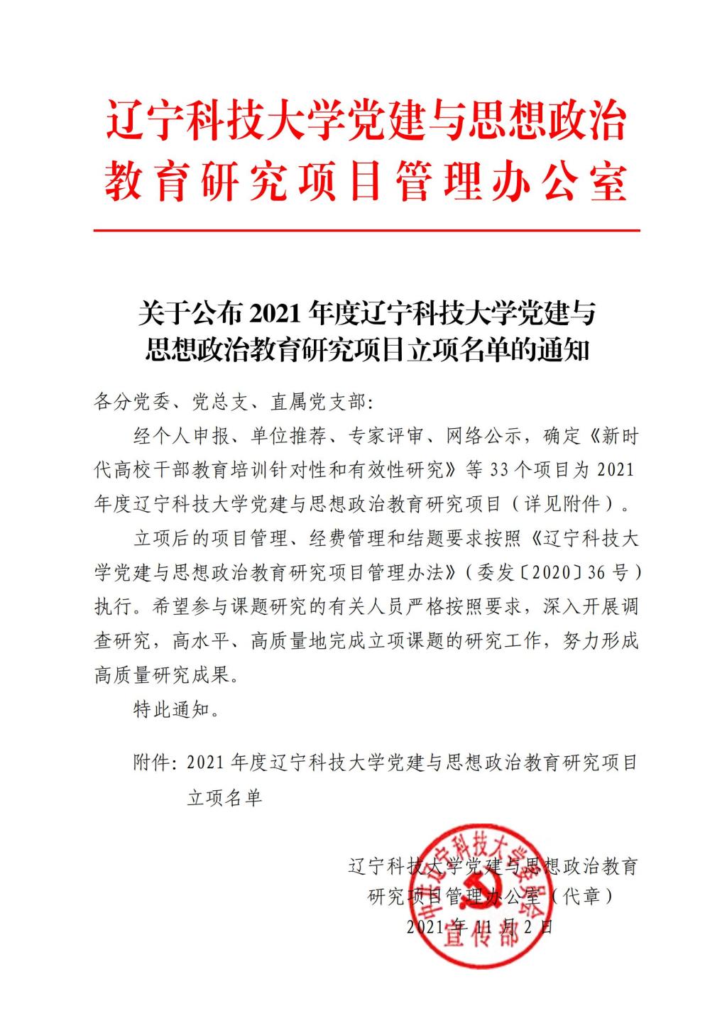 关于公布2021年度乐动在线下载(中国)党建与思想政治教育研究项目立项名单的通知