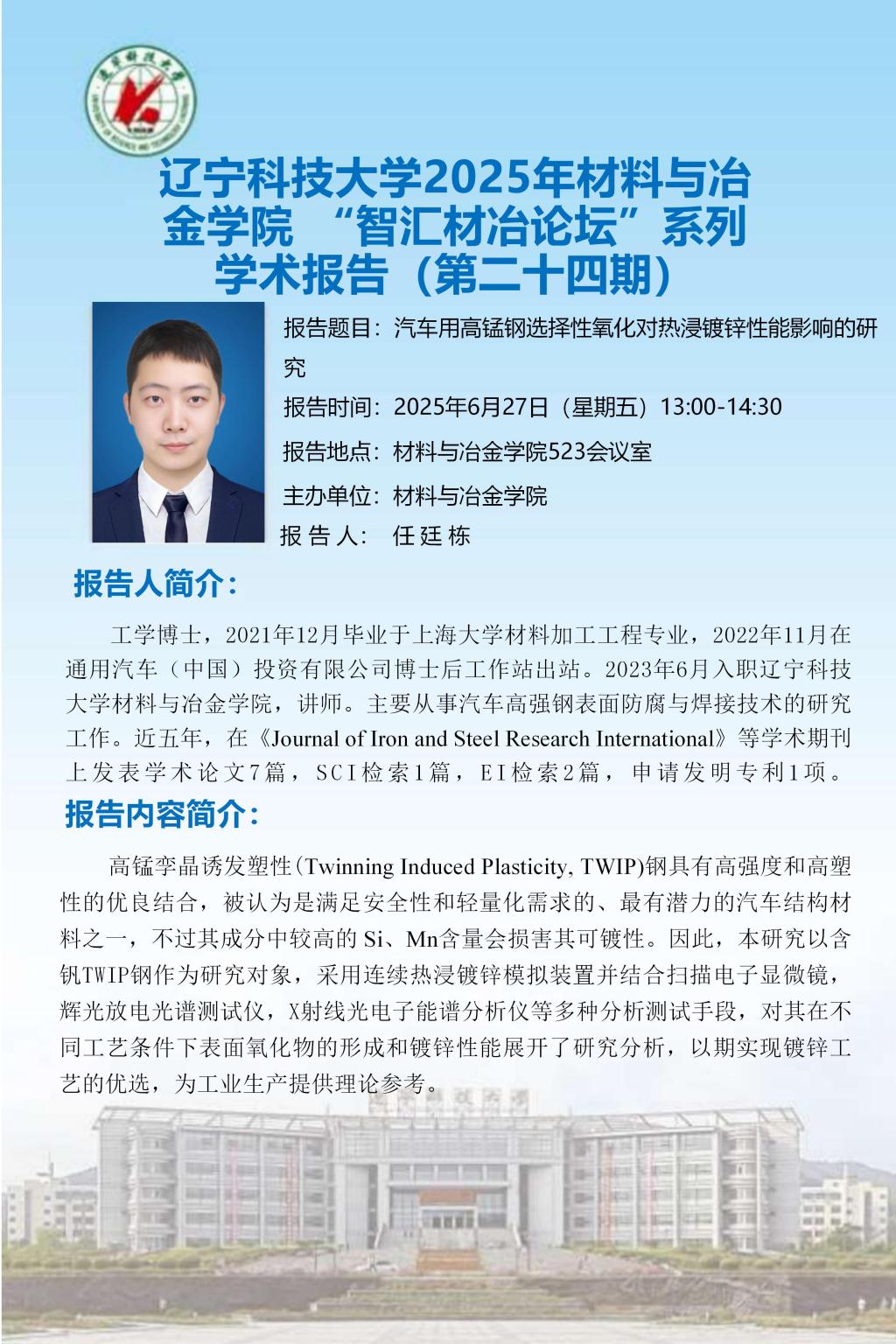 乐动在线下载(中国)2025年材料与冶金学院 “智汇材冶论坛”系列学术报告 (第二十四期)