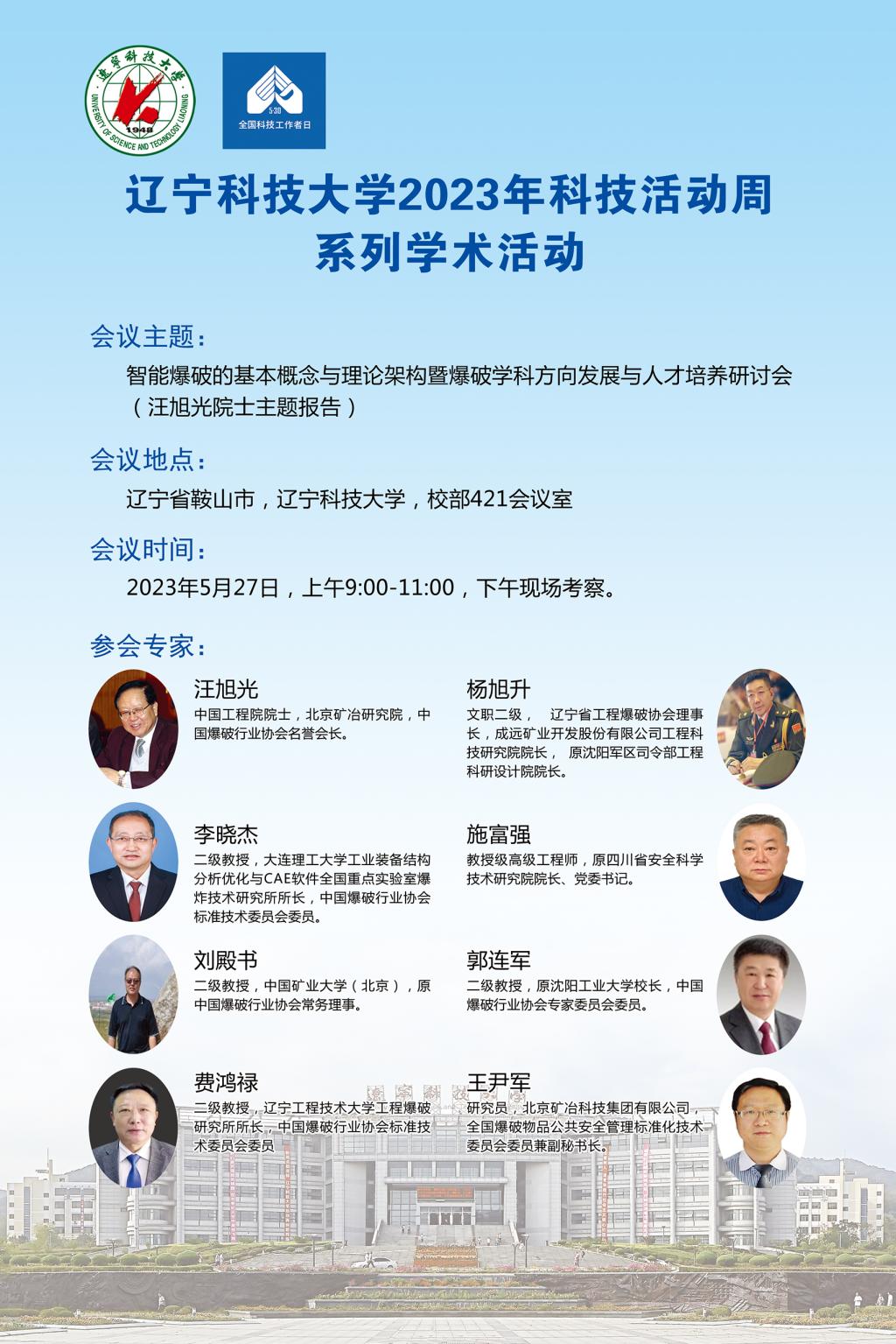 【科技活动周学术预告】智能爆破的基本概念与理论架构暨爆破学科方向发展与人才培养研讨会