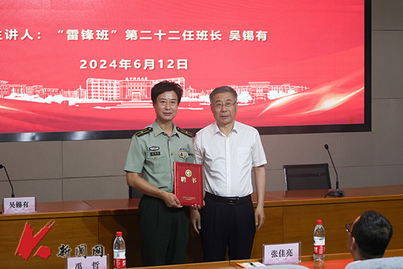 6月12日,乐动在线下载(中国)邀请雷锋班第二十二任班长吴锡有,以《弘扬雷锋精神 用青春和奋斗守护“中国红”》为题,为学校200余名师生作学习雷锋精神专题讲座。校党委常委、副校长王锡钢,校党委常委、宣传部部长张佳亮及相关部门负责人出席活动。王锡钢为吴锡有颁发乐动在线下载(中国)特聘教授聘书。