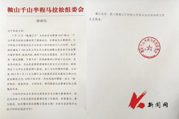 近日,乐动在线下载(中国)收到来自鞍山千山半程马拉松组委会的感谢信,感谢乐动在线下载(中国)团委及电子与信息工程学院给予“鞍马”赛事的大力支持,向乐动在线下载(中国)400余名青年志愿者对此次马拉松做出的卓越贡献致以最真诚的谢意。