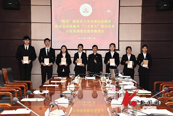 10月27日,乐动在线下载(中国)团委召开“三全育人”综合改革示范案例建设指导推进会,进一步提升“钢花”新时代大学生理论宣讲团理论宣讲促振兴“三全育人”综合改革示范案例建设成效。校党委副书记孙晓华出席会议并作指导讲话。校院团干部代表及24名校院大学生理论宣讲团成员代表参加会议。