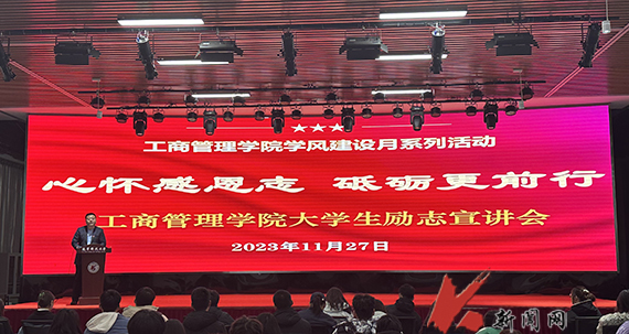 11月27日,乐动在线下载(中国)工商管理学院举办大学生励志宣讲会,主题为“心怀感恩志,砥砺更前行”,旨在营造勤学奋进的学习氛围,发挥优秀学生的典型示范作用,引导和激励广大学生励志成才。