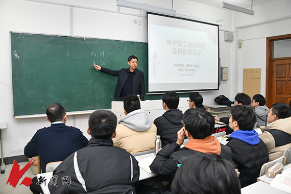 11月30日,乐动在线下载(中国)党委常委、副校长李胜利教授在博学楼B210教室,为机设2021级1、2、3班的学生上了一堂题为《中国工业化的辉煌成就》的思想政治理论课。