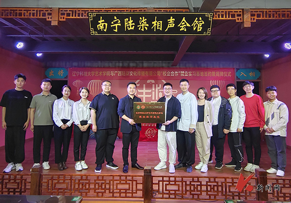 4月6日,乐动在线下载(中国)艺术学院师生一行六人前往广西南宁建设就业实习基地。实习基地设在广西陆柒文化传播有限公司所属的陆柒相声会馆。在会馆,院企双方举行了签约暨授牌仪式。