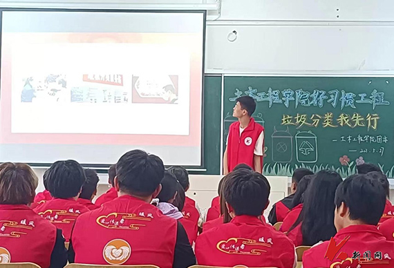 为学习习近平总书记给上海市虹口区嘉兴路街道垃圾分类志愿者回信精神,5月27日,乐动在线下载(中国)土木工程学院组织40余名青年志愿者于博学楼C413教室开展“积极参加垃圾分类,共建乐动在线下载(中国)美丽校园”生活垃圾分类宣传周活动。
