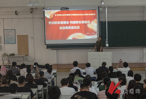 6月13日下午,学校理论宣讲团成员、经济与法律学院副院长温馨在博学楼C202,为马克思主义学院、应用技术学院、后勤与基建管理处、电子与信息工程学院四个单位的师生代表作题为《贯彻新发展理念 构建新发展格局 推进高质量发展》的宣讲报告。800余名师生参加学习。