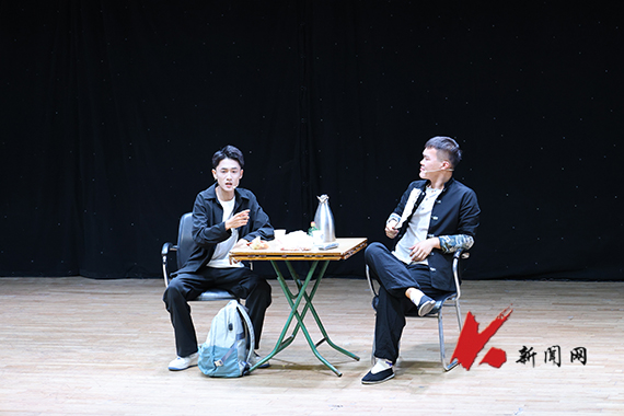 演出中,由艺术学院教师周壮创作并导演的,学生霍圣杰、阮航带来的剧目《父与子》,展现了一位怀揣梦想的父亲通过聊父母的往事教育他的儿子关于“传承”辽宁相声,振兴辽宁文化的故事,现场包袱不断掌声不停。
