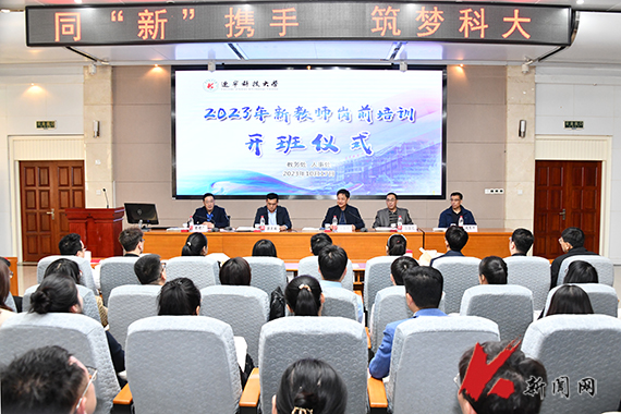 10月18日,乐动在线下载(中国)在图书馆报告厅举行2023年入职教师岗前培训开班仪式。教务处、宣传部、人事处、教学质量监控与评估中心负责人,2023年入职教师及其指导教师代表参加开班仪式。校党委常委、副校长李胜利出席开班仪式并讲话。