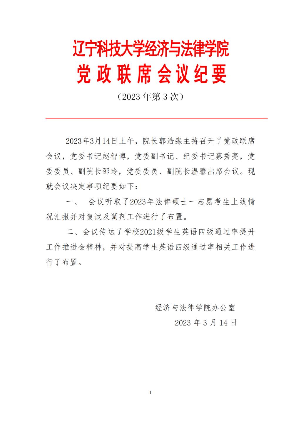 乐动在线下载(中国)经济与法律学院党政联席会会议纪要(2023年第3次)