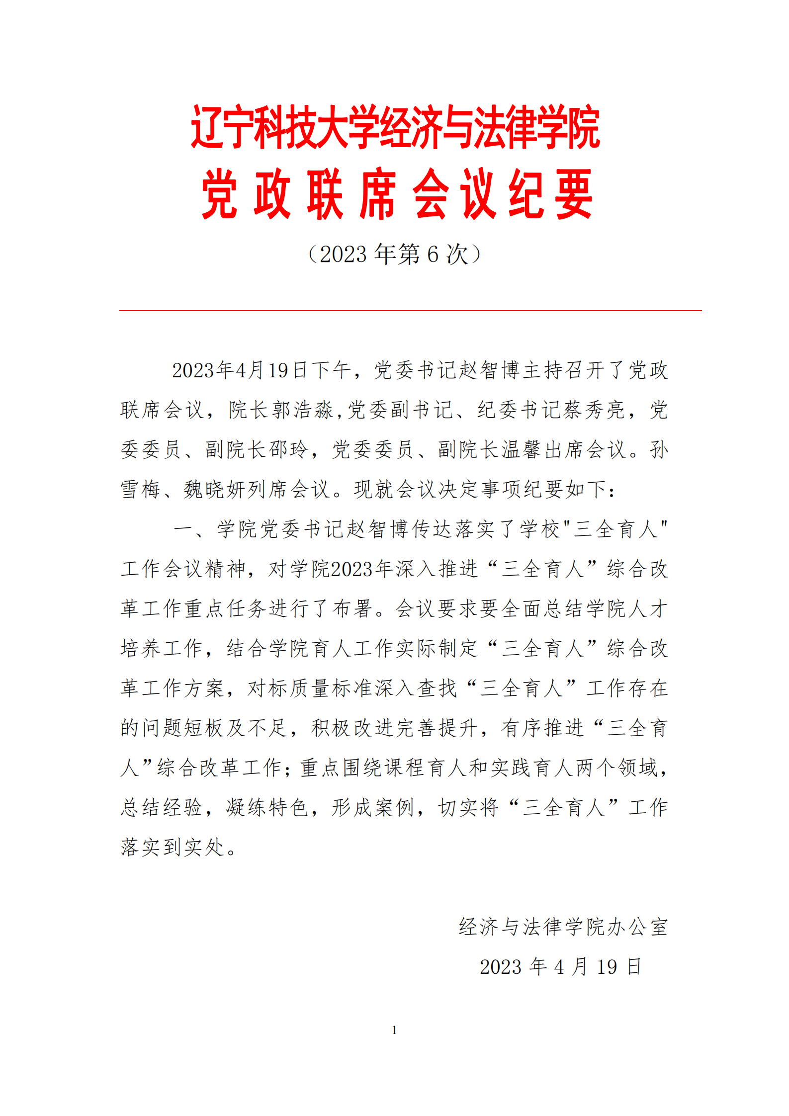 乐动在线下载(中国)经济与法律学院党政联席会会议纪要(2023年第6次)