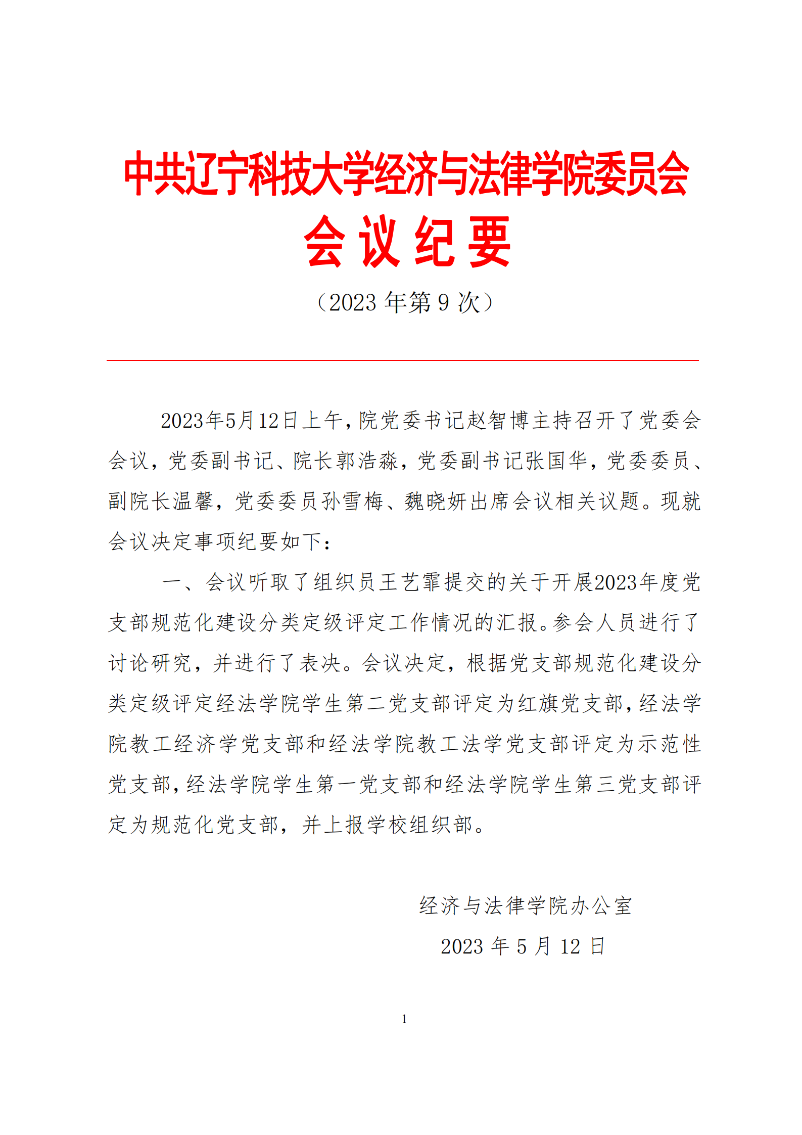 中共乐动在线下载(中国)经济与法律学院委员会会议纪要(2023年第9次)