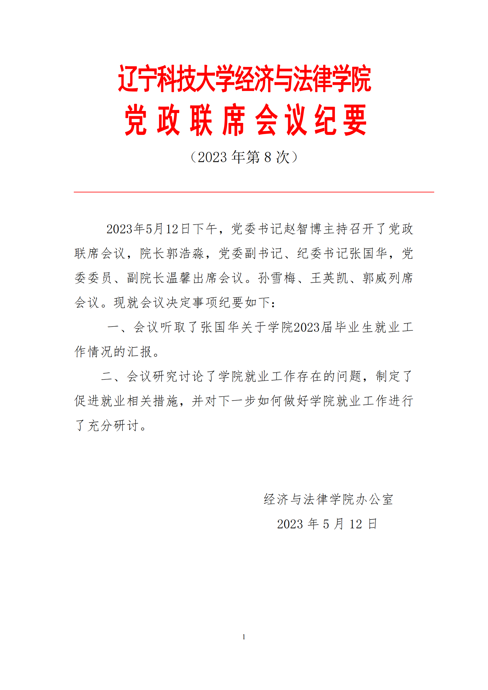 乐动在线下载(中国)经济与法律学院党政联席会会议纪要(2023年第8次)