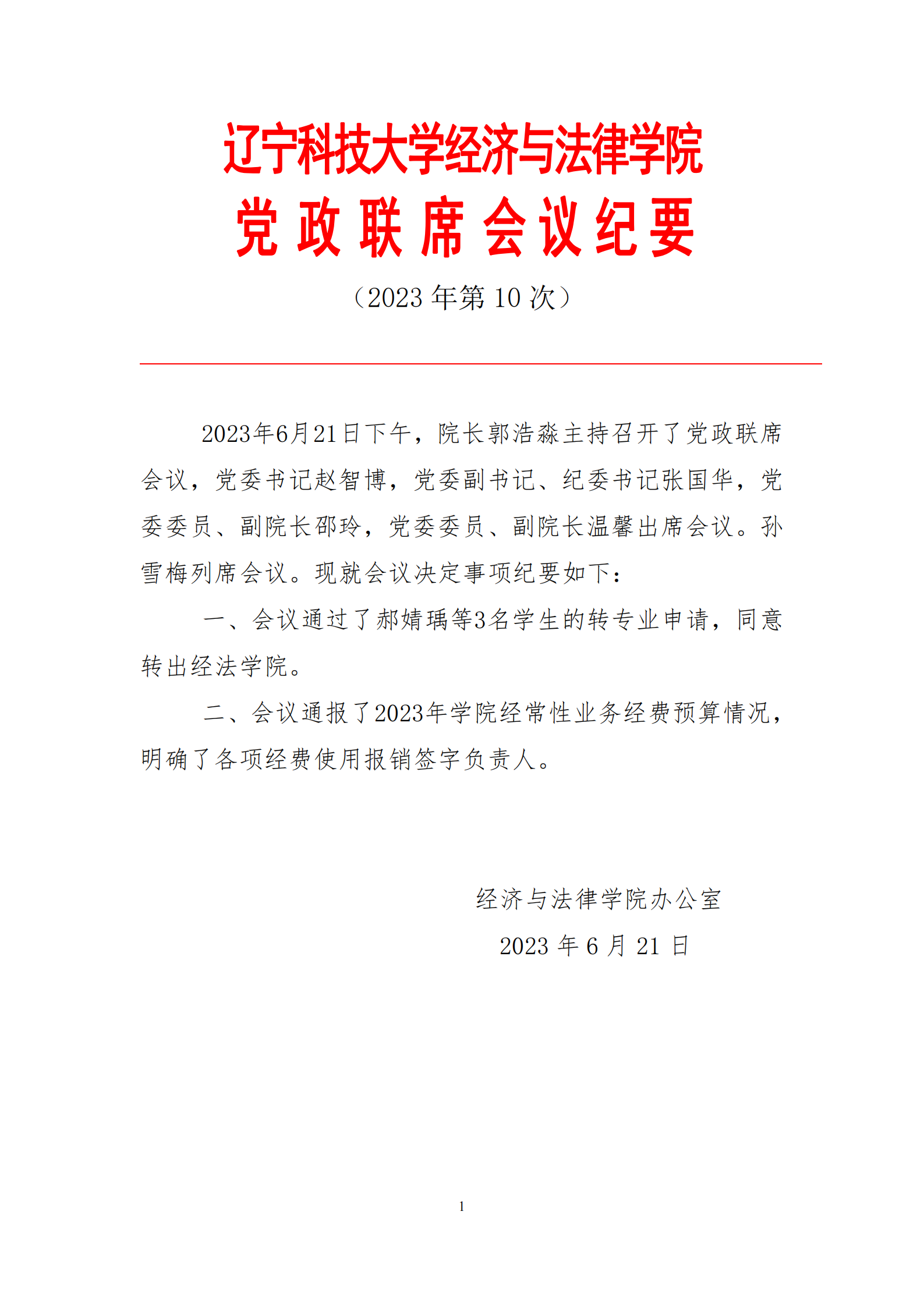 乐动在线下载(中国)经济与法律学院党政联席会会议纪要(2023年第10次)