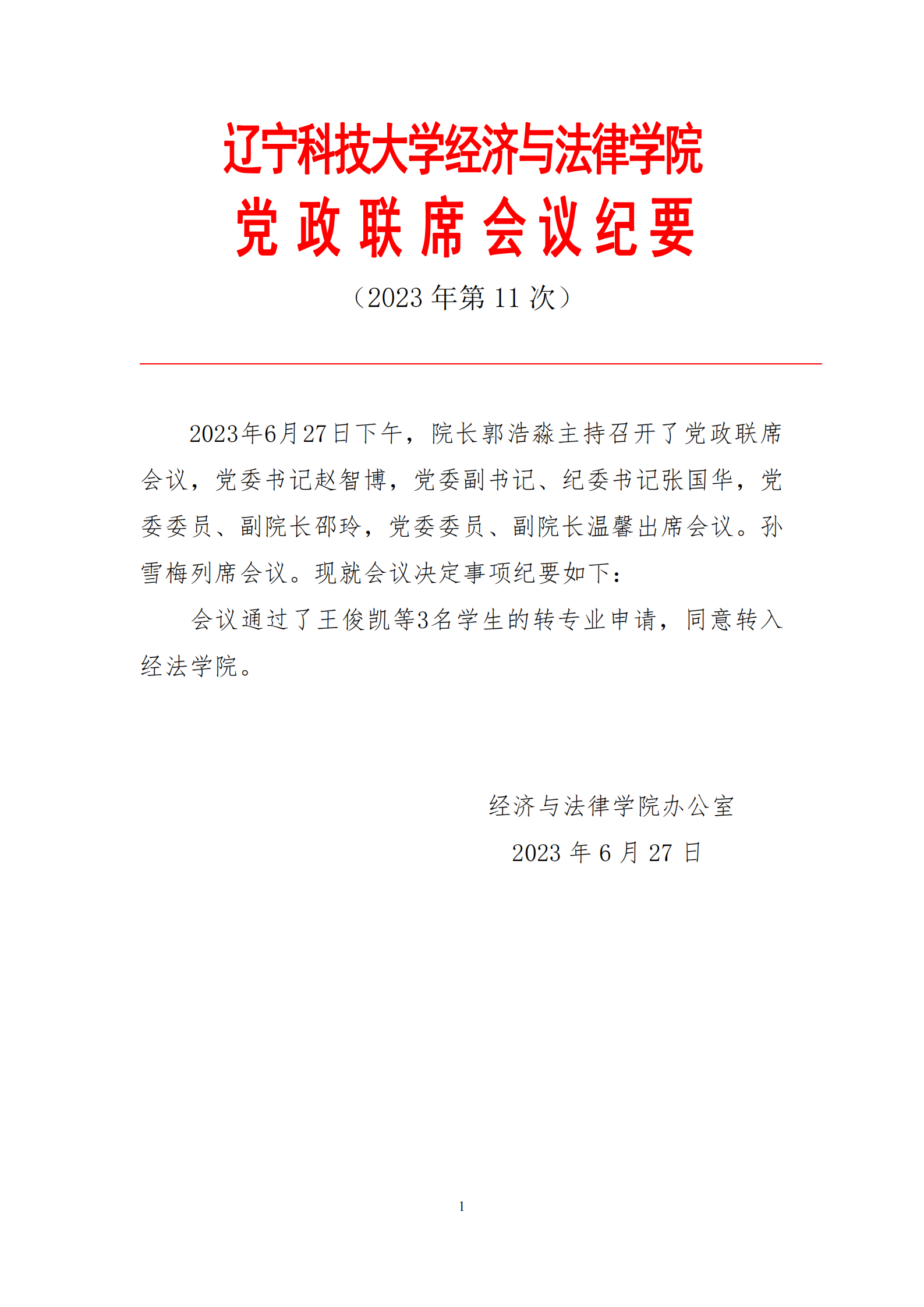 乐动在线下载(中国)经济与法律学院党政联席会会议纪要(2023年第11次)