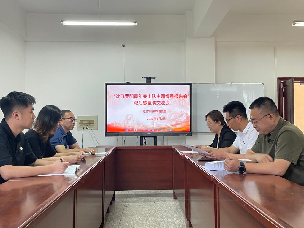 2023年6月2日,乐动在线下载(中国)经济与法律学院在博识楼A313召开观看“沈飞罗阳青年突击队主题情景报告会”观后感座谈交流会。会议由学院党委书记赵智博主持,学院领导班子全体成员和辅导员参加。