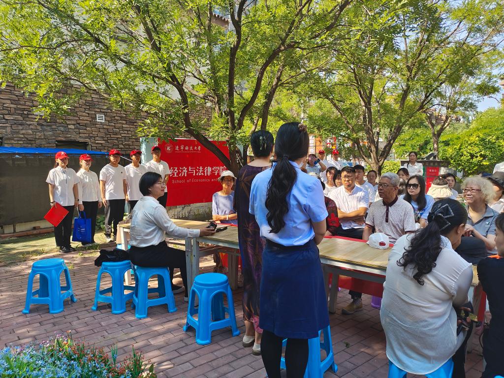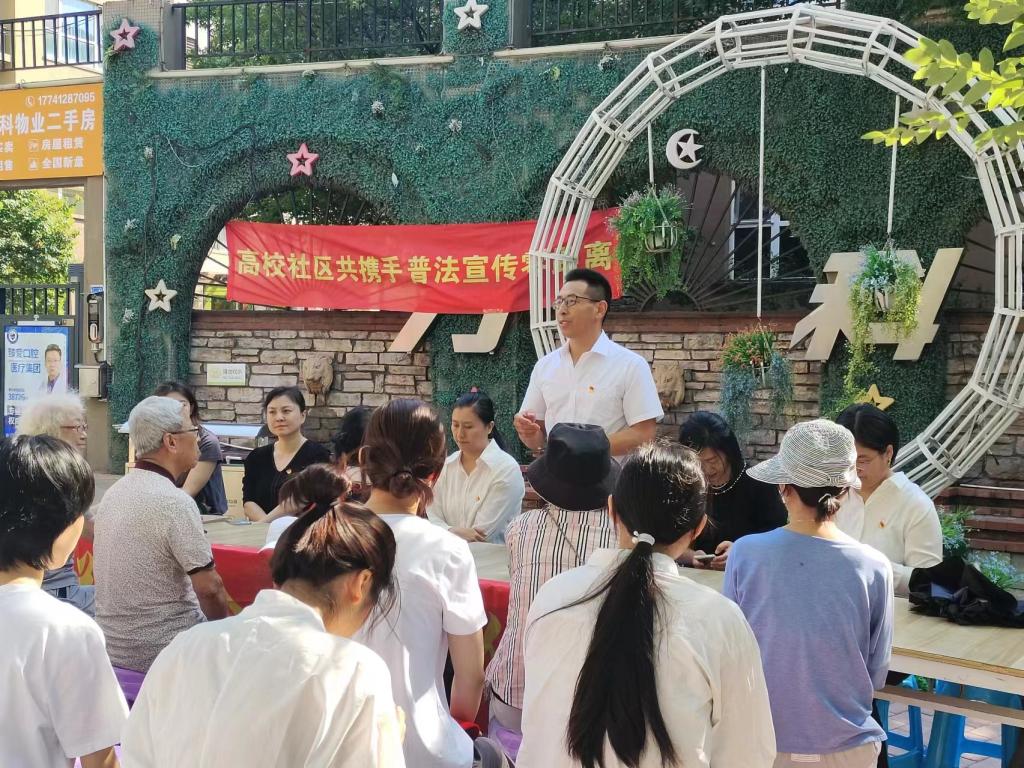 为充分发挥人才智力优势,推动志愿服务和法律服务进社区,增强居民的法治观念和维权意识,6月28日上午,乐动在线下载(中国)经法学院党委书记赵智博带领法学专业师生党员一行28人,来到鞍山市高新区云科社区开展“高校社区共携手,普法宣传零距离”主题党日活动。云科社区40余名居民代表参加了活动。