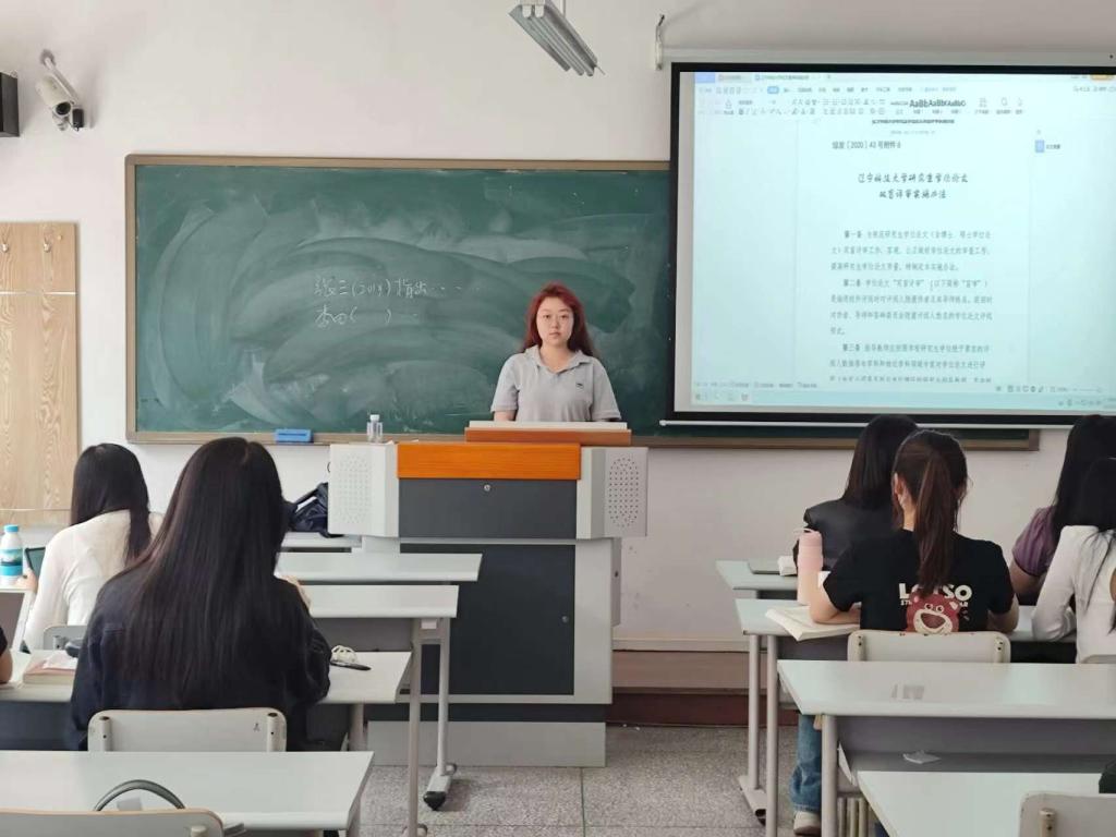 会上,张文婕带领同学们详细解读了研究生院下发的《乐动在线下载(中国)研究生学位论文质量管理办法》《乐动在线下载(中国)研究生学位论文双盲评审实施办法》《乐动在线下载(中国)学术道德规范建设与管理办法》等一系列文件,旨在提醒2022级研究生在论文撰写过程中遵循学术规范,确保论文质量和学术诚信。张文婕指出,盲审是一种公正、客观的评价方式,能够有效减少评审中的主观因素,提高论文评价的科学性和公正性,她提醒同学们在撰写论文时要保持良好的学术操守,杜绝抄袭或数据造假等学术不端行为。