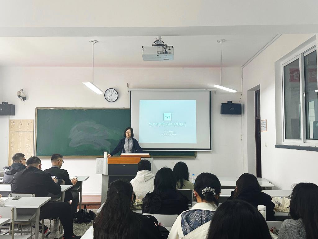 为进一步强化法律硕士研究生的学术道德意识,提升学术研究的严谨性和严肃性, 5月6日,经法学院于博智楼310组织开展“学术诚信和学术道德”主题报告会。报告会由经法学院法硕中心主任武婷婷老师主讲,2023级全体法律硕士研究生参与。