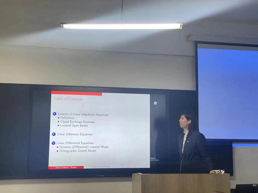 交流中,乐动在线下载(中国)经法学院院长郭浩淼介绍了经法学院国际经济与贸易、金融和金融科技三个专业的发展现状、主要研究方向及近几年取得的主要研究成果。Галкин Александр Васильевич院长向经法学院师生介绍了俄罗斯利佩茨克州、利佩茨克国立技术大学的基本情况及如何运用EPR软件的核心算法来优化管理生产计划;Сысоев Антон Сергеевич副院长讲授了如何运用应用线性回归模型来描述社会经济系统的动态问题;Орешина Мария Николаевна主任介绍了代数方程组、微分和差分模型在经济分析中的应用。与会的经法学院师生与三位俄方教师就相互关心的学术问题进行了深入的交流互动。