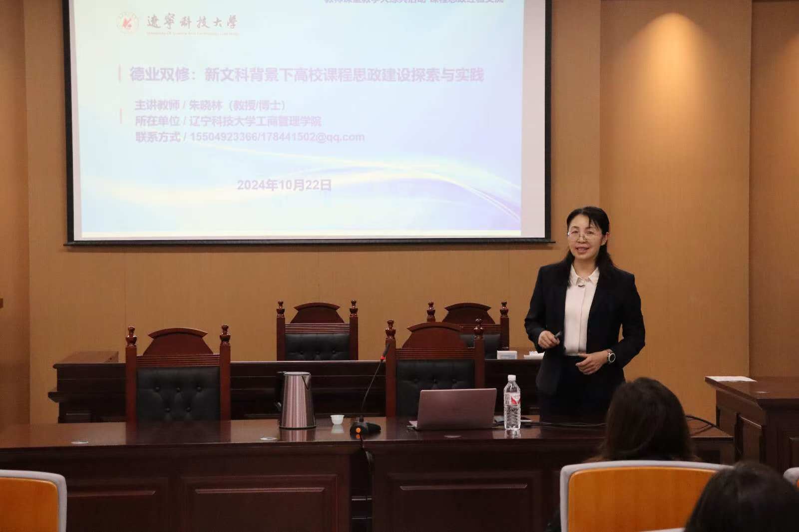 10月22日,经法学院邀请乐动在线下载(中国)工商管理学院教授朱晓林于博识楼A402模拟法庭作课程思政经验交流报告。