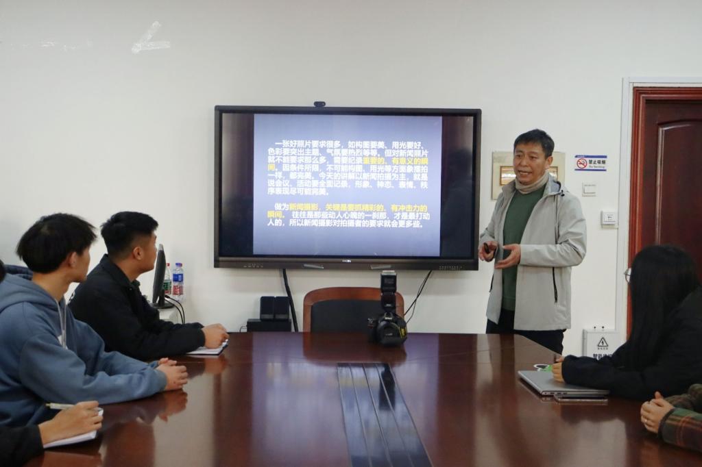 培训会上,金会刚深入浅出地讲解了新闻照片的拍摄角度、构图方式和后期处理三个方面的基础知识和技巧,细致讲解了摄影中的注意事项和常见问题。他从构图突出重点、丰富照片内容使其具有感染力、学会抓拍来定格美好瞬间等方面强调了摄影的创造力和收藏价值。为方便大家理解,金会刚利用生动实例,结合自身摄影创作经验,与大家分享了不同拍摄场景下的摄影技巧,指出了其中可能存在的拍摄问题,提出了针对性的意见。同时,他鼓励同学们积极尝试,在拍摄实践中逐步提高自身摄影能力,记录生活、感悟生活、收获快乐。