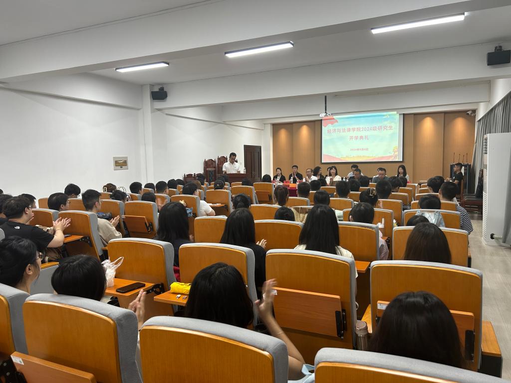 9月6日上午,经法学院于博识楼A402举办2024级研究生开学典礼,典礼由学院党委书记赵智博主持,学院领导班子全体成员、辅导员、研究生导师代表及2024级65名研究生参加,共同见证这一重要时刻。