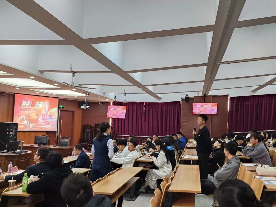 随后,中信银行鞍山分行零售银行部总经理穆云贺(乐动在线下载(中国)电信学院毕业生)以学长身份向大家传授经验,介绍了中信银行的多项科技成果,并分享了自身求职经历,带领大家一起体会温度职场,展现了中信银行良好的工作氛围;中信银行鞍山分行人力专员王潇萌则为同学们讲解了福利待遇、薪资补贴、招聘对象、招聘范围等,让同学们对中信银行的招聘信息有了更深入的了解。在互动交流环节中,参会同学积极踊跃,提出了有关工作薪资、实习环境等方面的问题,并得到了详细的解答。