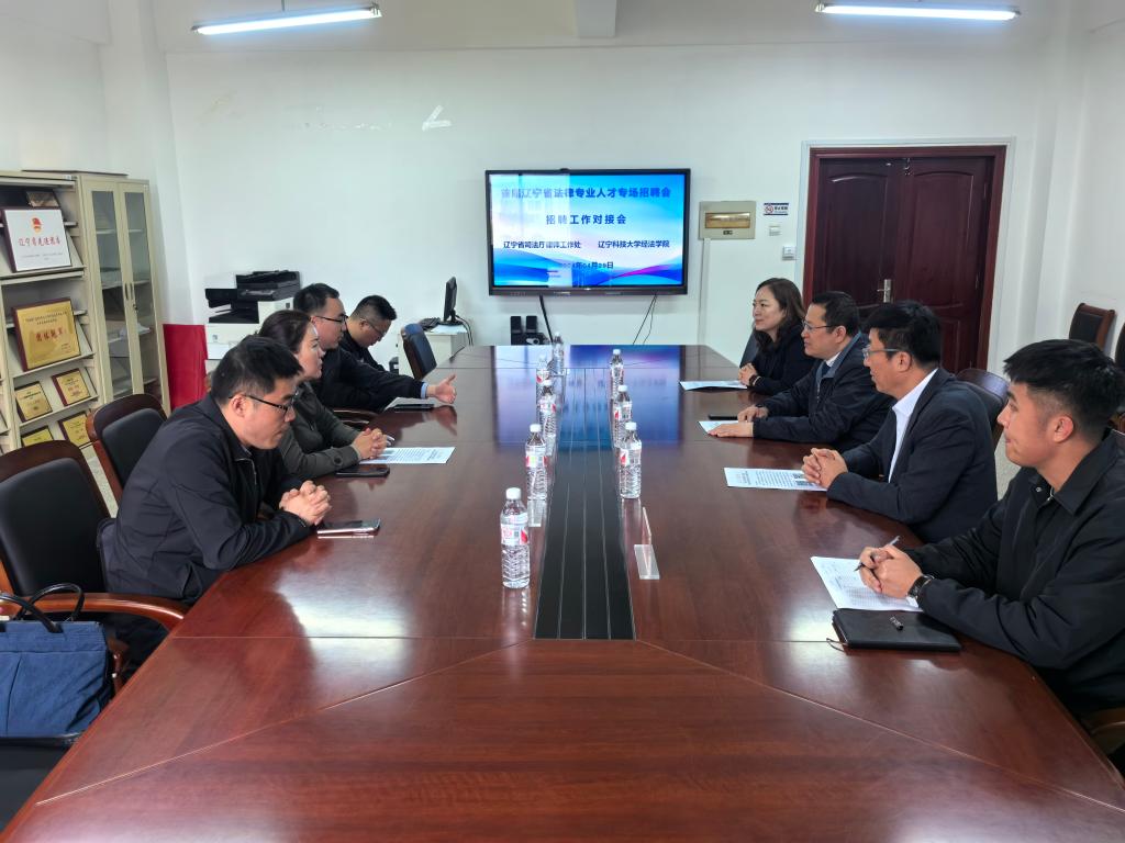 为促进法学专业毕业生就业工作,4月29日,乐动在线下载(中国)经济与法律学院与辽宁省司法厅律师工作处于博识楼A305召开“首届辽宁省法律专业人才专场招聘会”对接会,辽宁省司法厅律师工作处处长王燕、鞍山市律师协会会长成守印、经法学院院长郭浩淼、副院长邵玲、毕业班辅导员张鹏飞及相关工作人员参加会议。