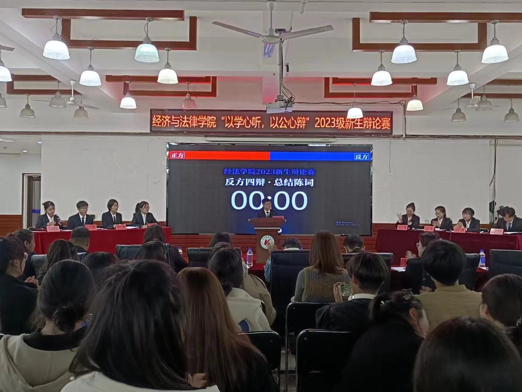 11月2日晚,经法学院于明德楼大学生活动中心举办“以学心听,以公心辩”主题辩论赛。本次辩论赛由金融23-2班白江悦主持,乐动在线下载(中国)辩论队负责人、思辨社社长徐延伟、经法学院辩论队队长韩雨彤、副队长郭聪皓以及经法学院分团委副书记、学生会主席团成员和各部门负责人出席活动并担任评委,2023级全体学生参加本次活动。
