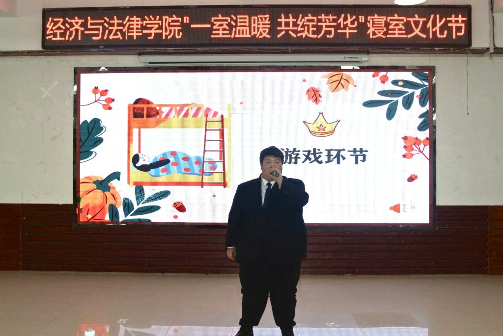 11月23日晚,经法学院于明德楼大学生活动中心举办“一室温暖,共绽芳华”主题寝室文化节。经法学院党委书记赵智博、团委副书记张鹏飞、团学骨干以及2023级新生共计200余人参加了本次活动。