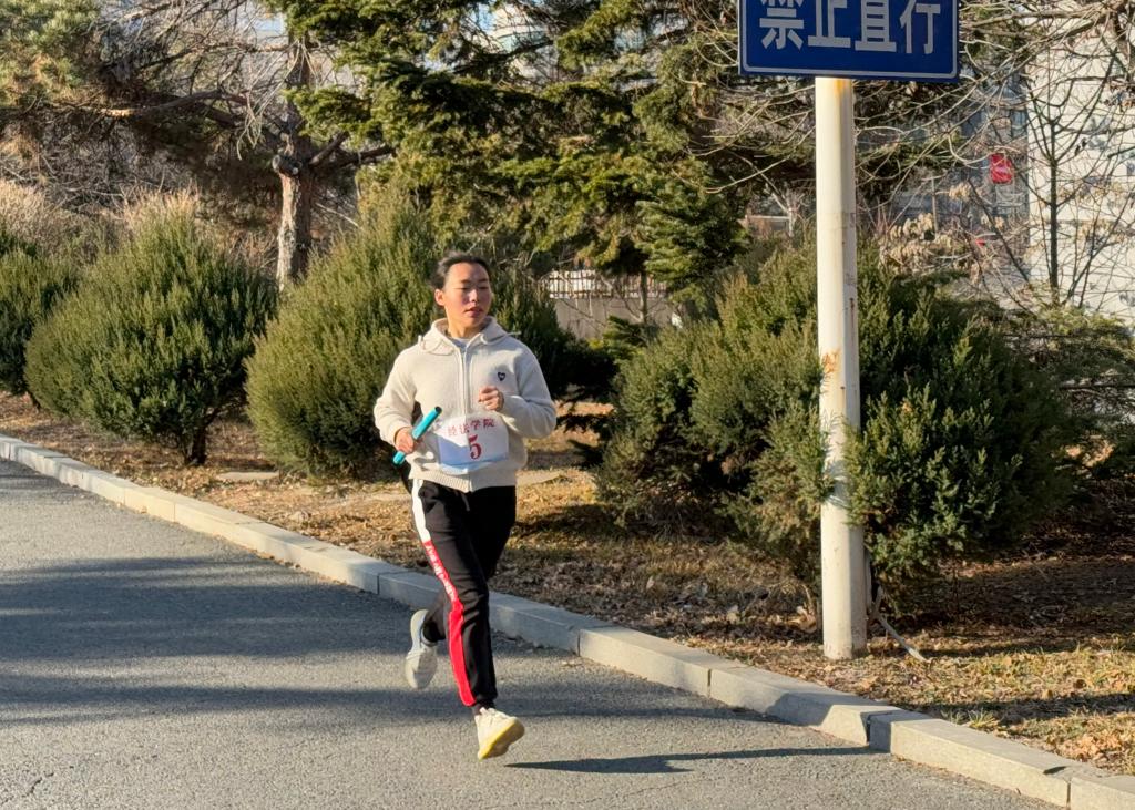 本次比赛为男女双组竞技,各学院男女各10位运动精英,以环校接力的方式展开激烈角逐。上午9:00,随着一声发令枪响,比赛正式拉开帷幕。寒风凛冽,但运动员们的斗志丝毫未减。赛场上,运动员们你追我赶,每一次交接棒都充满了紧张与期待,每一次冲刺都凝聚着团队的力量与信念。赛道旁,欢呼呐喊声交织,冬日的寒意被这股青春活力驱散,激励着运动员们不断向前。当最后一抹身影划破终点线的那一刻,时间见证了努力的回报,汗水铸就的辉煌在阳光下熠熠生辉。