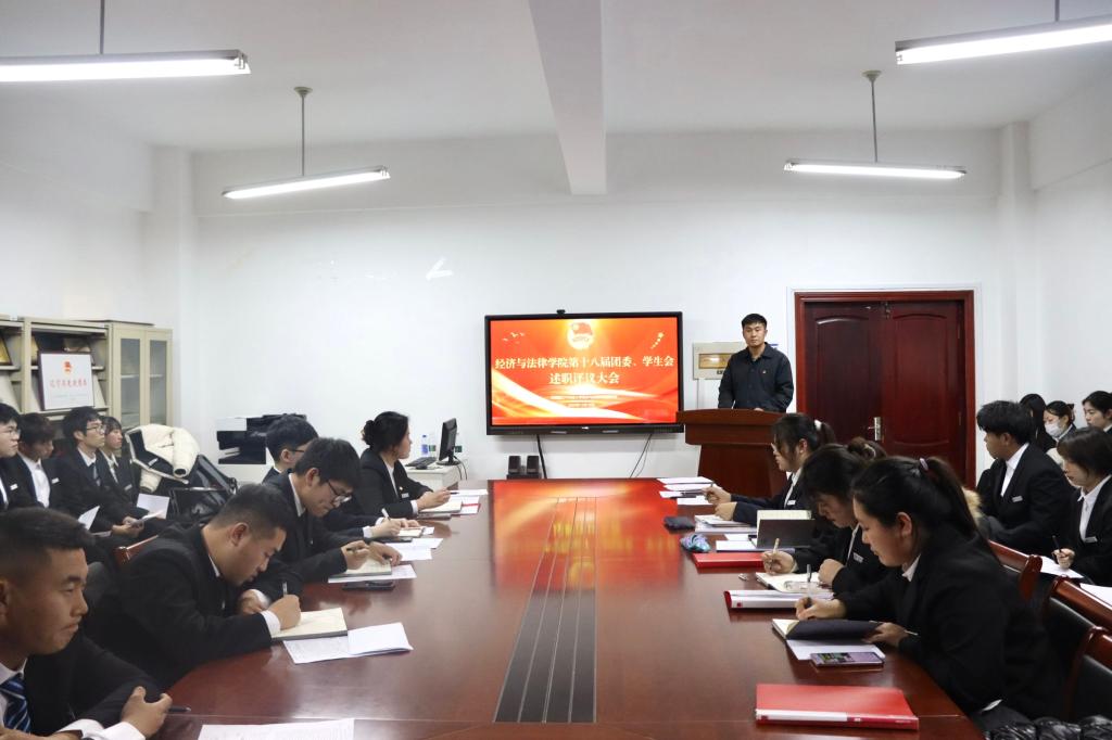 12月12日下午,经法学院于博识楼A305召开第十八届团委、学生会述职评议会,学院团委副书记张鹏飞及全体团学骨干参加了本次会议。会议由学生会执行主席兼办公室负责人吴雨纯主持。