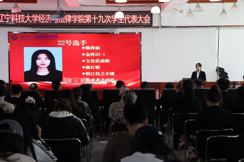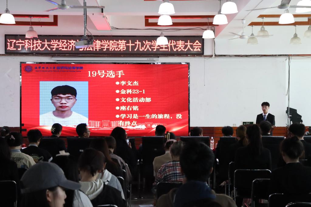 9月28日上午,经法学院于明德楼大学生活动中心召开第十九次学生代表大会。本次大会由经法学院第十八届学生会执行主席吴雨纯主持,学院党委书记赵智博、党委副书记张国华、学办主任齐艳萍、团委副书记张鹏飞、学院团学骨干以及来自各个团支部的113名学生代表参加。本次大会共有14名同学参与部门负责人竞选,27名同学参与工作人员竞选。